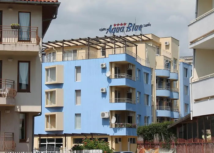 Aqua Blue Apartments 阳光海滩毗邻卧室海滩俱乐部,距离布尔加斯机场25公里. 在公寓的客房内,可用阳台,沙发 和气候控制.